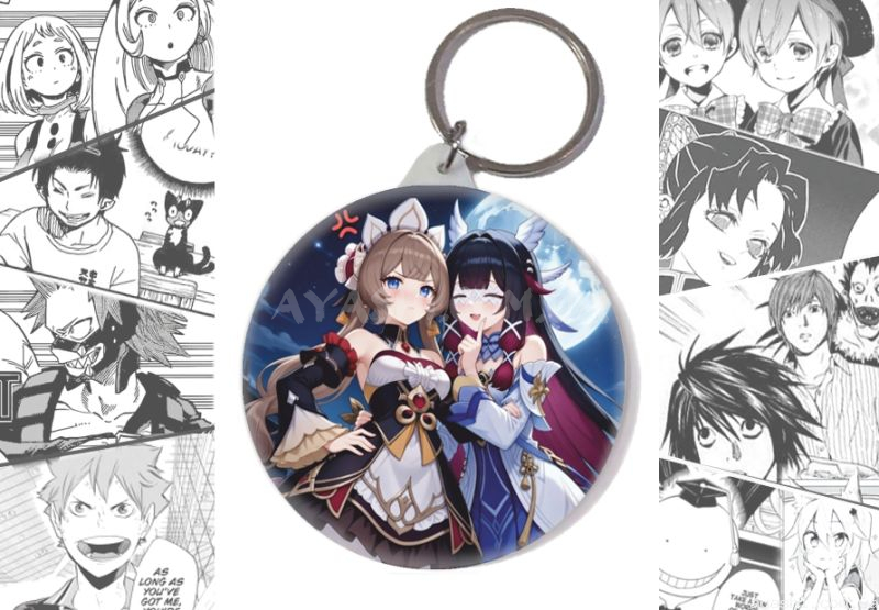Брелок круглий за мотивами Genshin Impact - Коломбіна та Сандроне .