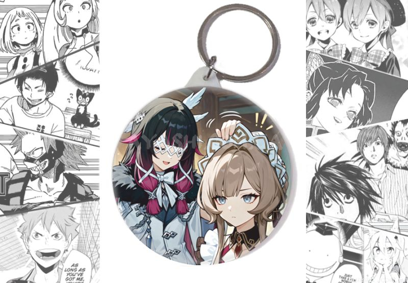 Брелок круглий за мотивами Genshin Impact - Коломбіна та Сандроне .