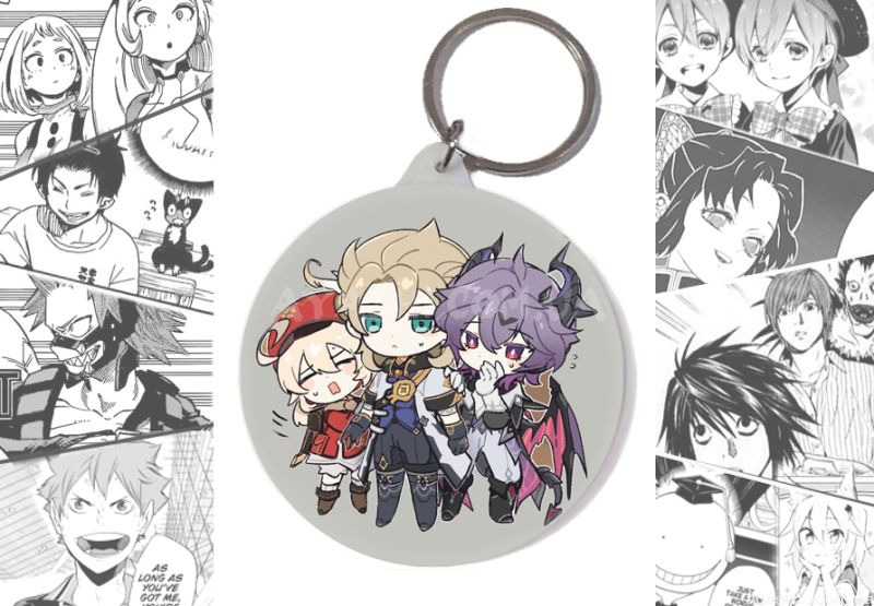 Брелок круглий за мотивами Genshin Impact - Альбедо, Клі та Дурін