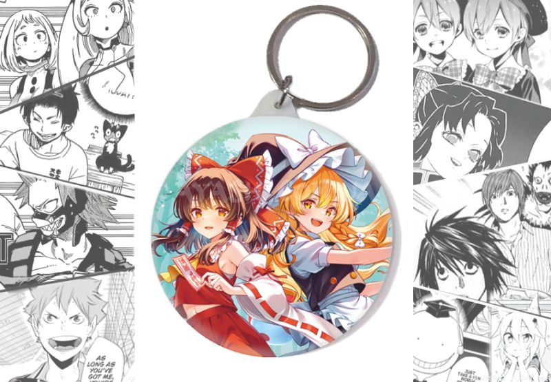 Брелок круглий за мотивами Touhou Project: Рейму Хакурей та Маріса Кірісаме.