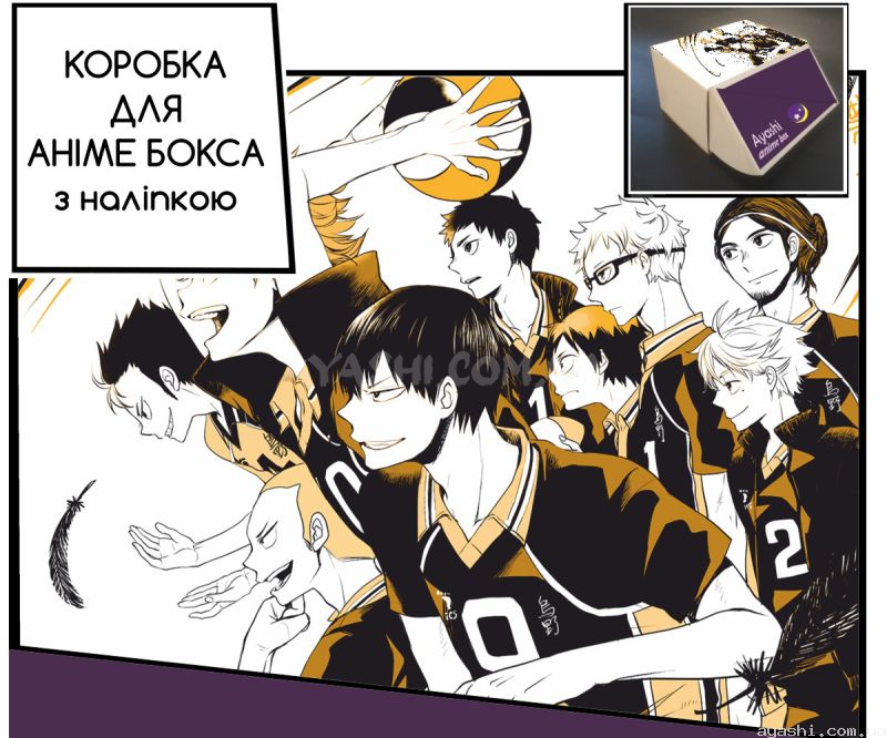 Сувенірна картонна коробка з наліпкою для формування аніме-боксу, дизайн зовнішньої частини виконано за мотивами Haikyuu!!.