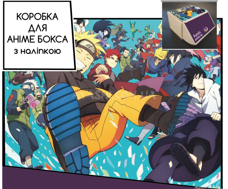 Сувенірна картонна коробка з наліпкою для формування аніме-боксу, дизайн зовнішньої частини виконано за мотивами Naruto.