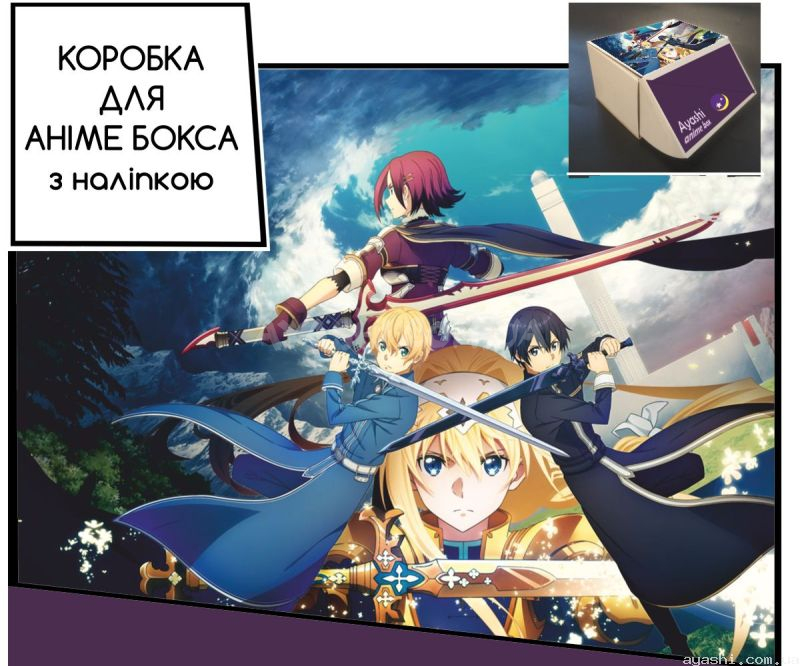 Сувенірна картонна коробка з наліпкою для формування аніме-боксу, дизайн зовнішньої частини виконано за мотивами Sword Art Online.