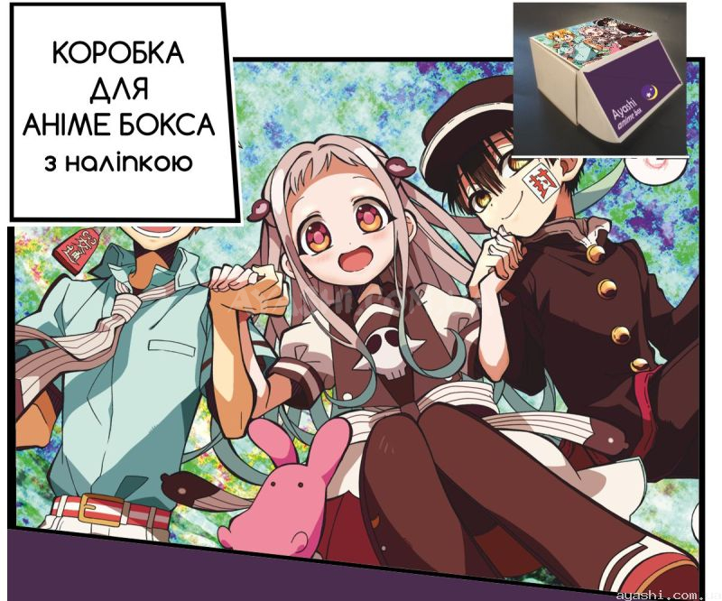Сувенірна картонна коробка з наліпкою для формування аніме-боксу, дизайн зовнішньої частини виконано за мотивами Toilet-bound Hanako-kun.