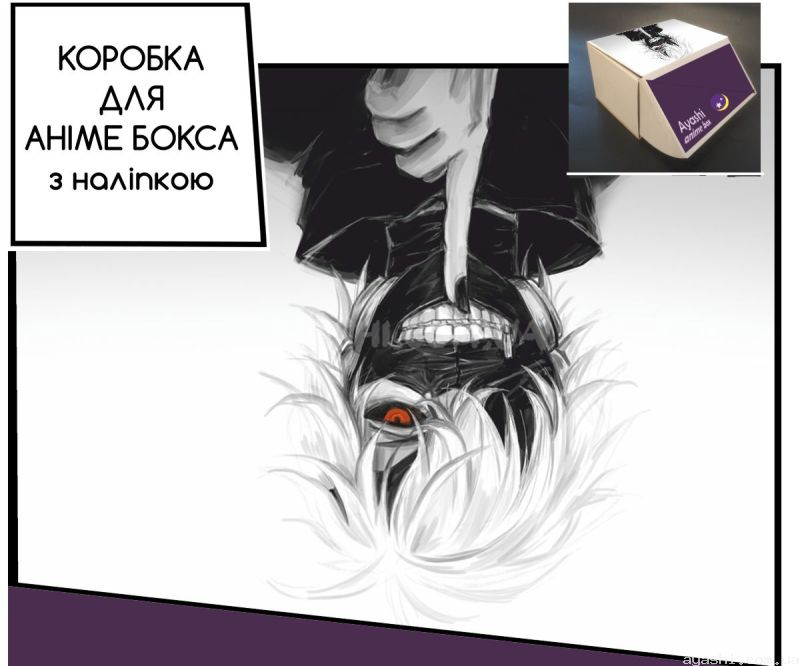 Сувенірна картонна коробка з наліпкою для формування аніме-боксу, дизайн зовнішньої частини виконано за мотивами Tokyo Ghoul.