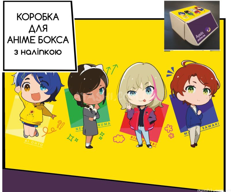 Сувенірна картонна коробка з наліпкою для формування аніме-боксу, дизайн зовнішньої частини виконано за мотивами Wonder Egg Priority.