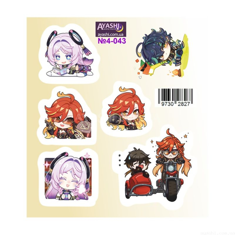Наліпки Genshin Impact Ескофьє , Вареса , Мідзукі , Чжун Лі