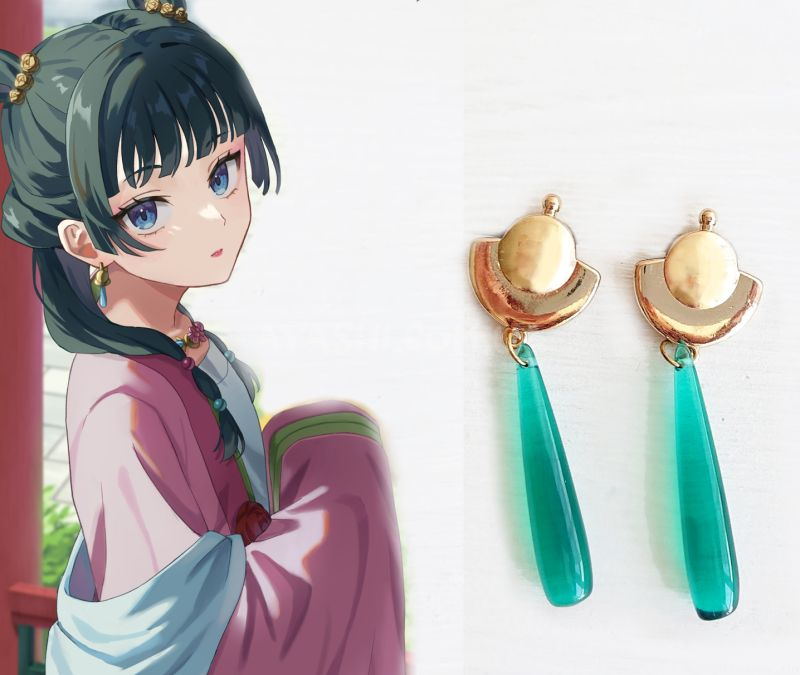 Оригінальні сережки як у чарівної Маомао з Kusuriya no Hitorigoto. Сережки прикрашені вісюлькою смарагдового кольору.