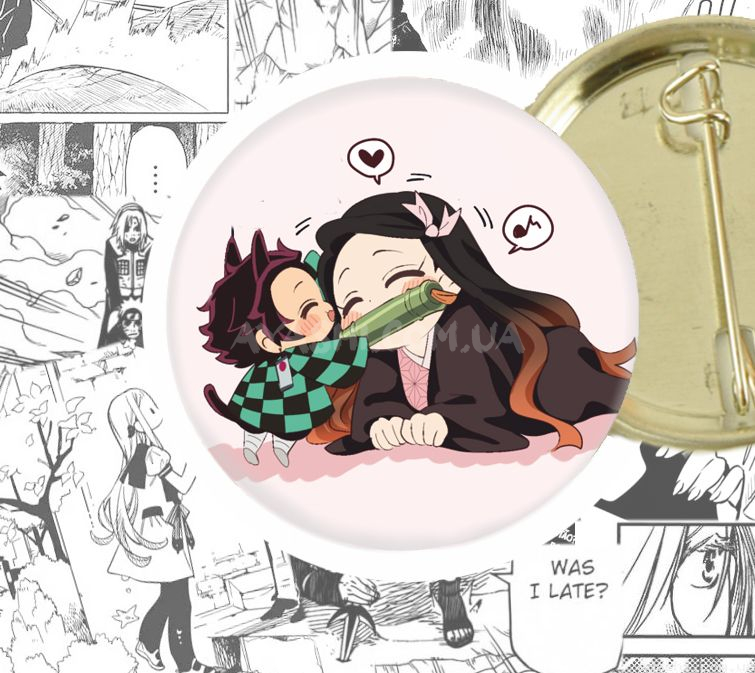 Незуко із Танджіро. Невеликий значок за темою Demon Slayer